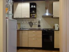 Квартира снабжена качественной, практичной новой мебелью: кухонным гарнитуром с электроплитой, духовым шкафом, вытяжкой и столовой зоной с мягким уголком и стульями. Также вас порадуют кухонная утварь, кофе, чай, сахар, растительное масло и специи. Пространство гостиной позволит вам комфортно отдохнуть на просторной двуспальной диван-кровати, воспользоваться телевизором и кофейным столиком, разместить ваши вещи в удобной гардеробной. Вам понравится наличие кондиционера, регулируемого отопления и освещения, большого зеркала. Кабельное телевидение и высокоскоростной интернет с системой беспроводного устройства Wi-Fi разнообразят Ваше свободное время. Комфортная ванная комната, оснащенная ванной с душем, современной стиральной машиной, умывальником, световыми приборами, феном, электрическими розетками, зеркалом. Вам будут предложены махровые полотенца и средства гигиены, такие как шампунь, гель для душа, зубная паста, мыло, туалетная бумага.